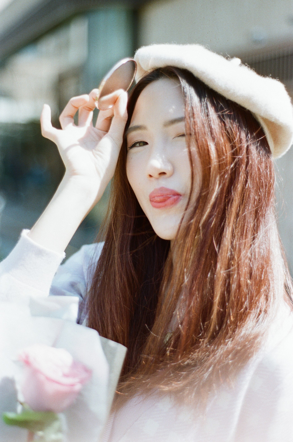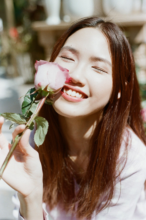 I'm working with my friend to create this set of film photos. Though I'm not a professional photographer, I do know how to style my vision and tell a story through the photos. I wanted these photos to have a warm, pastel, vintage touch to it. And that is how it turned out: